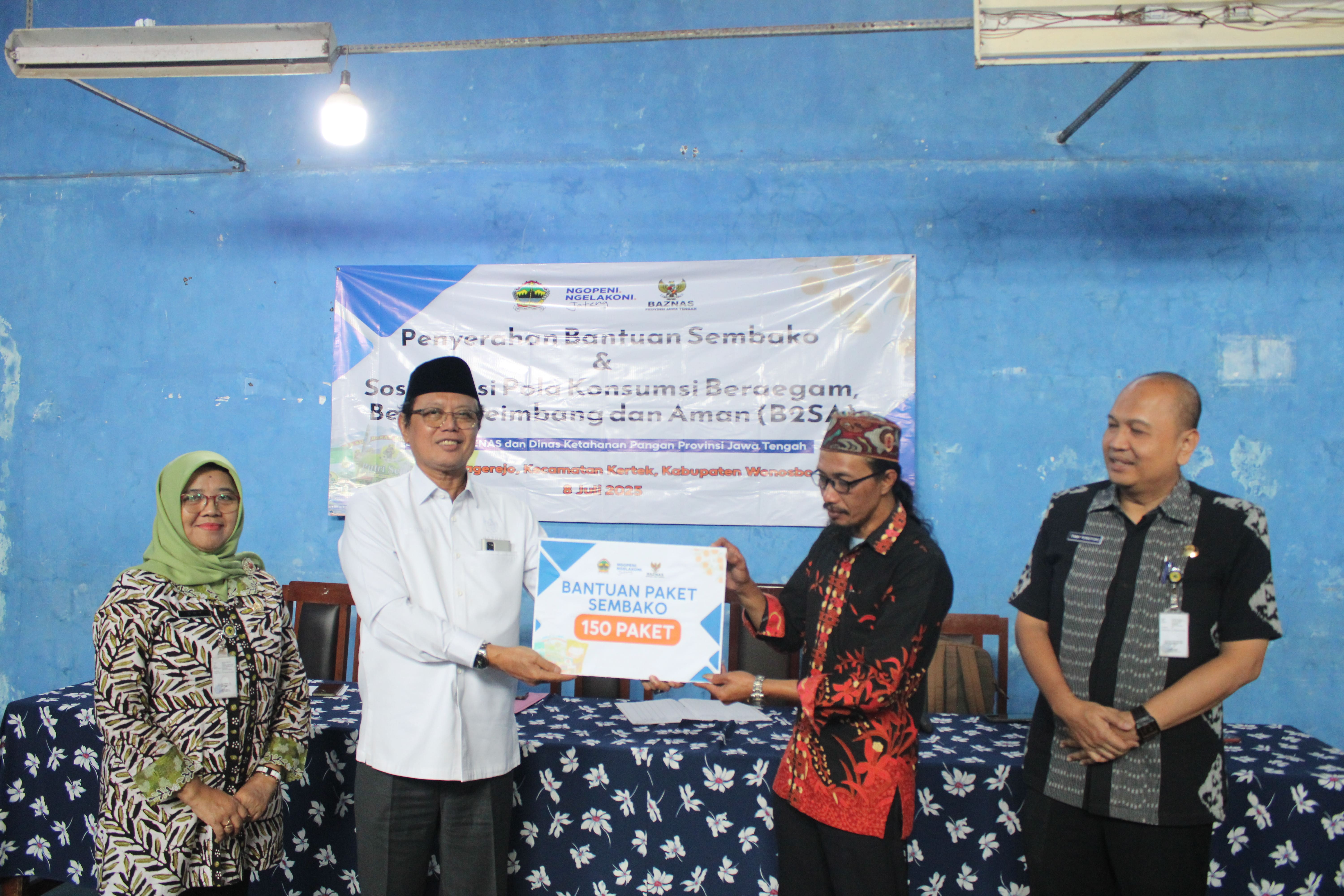 Selasa, 8 Juli 2025 dilaksanakan penyerahan bantuan kepada Desa Pagerejo Kecamatan Kertek Kabupaten Wonosobo sebagai desa dampingan dari Biro Administrasi Pembangunan Daerah. Tujuan dari pemberian bantuan tersebut yaitu sebagai langkah untuk pengentasan kemiskinan ekstrem dan mengurangi kasus stunting di wilayah Jawa Tengah. Bantuan yang diberikan terdiri dari 150 Paket Sembako dari BAZNAS Provinsi Jawa Tengah sebesar Rp. 30.000.000,- dan Beras 1 Ton dari Dinas Ketahanan Pangan Provinsi Jawa Tengah sebesar Rp. 12.500.000,- . Selain itu diberikan juga sosialisasi terkait Pola Konsumsi Bergizi, Beragam, Seimbang dan Aman (B2SA) dari Perhimpunan Sarjana Kesehatan Masyarakat.